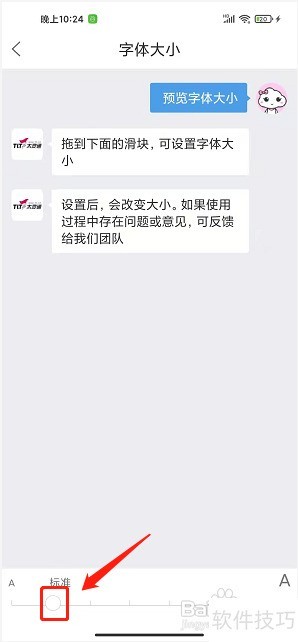 - 在字体设置中,滑动调节器至所需字号位置,完成大小设定。