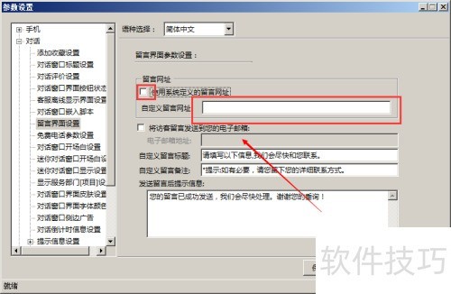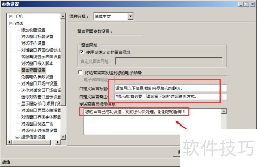 在留言界面右侧,你可以自定义红框中的各项内容,如留言标题、备注和提交后显示的信息,实现个性化的定制选项。