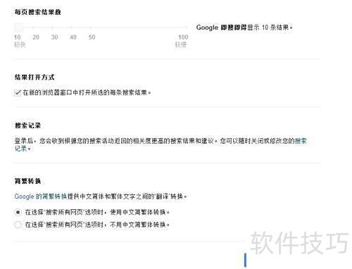 在搜索设置中,你可以自由定制每页展示的搜索结果数量、开启方式、查看历史记录以及语言偏好设定,记得最后别忘了保存更改哦!