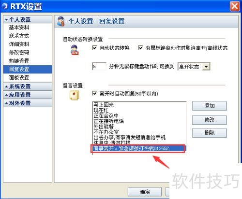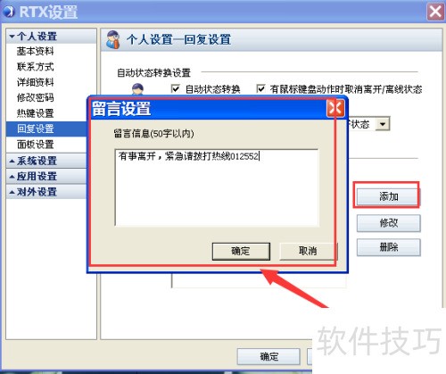 - 在弹出窗口中输入自动回复内容,确认即可。