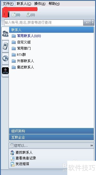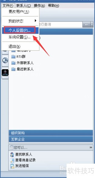 - 打开腾讯通RTX主界面,点击左上角文件菜单。