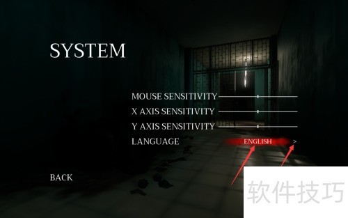 - 在SYSTEM界面中,LANGUAGE选项显示当前语言为默认,点击切换按钮可更改语言设置。