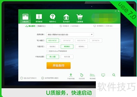 - 安装U启动后,插入U盘并点击开始制作,操作所示。