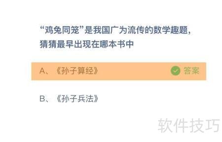 1、 4月15日蚂蚁庄园首题:鸡兔同笼作为经典数学趣题,最初出自哪部古籍?
