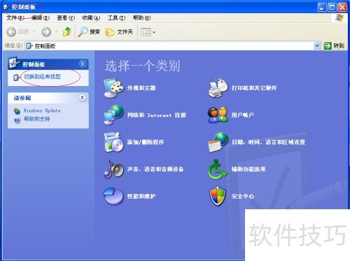 打开“控制面板”,点击“切换到经典视图”以调整系统配置。