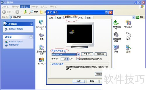 步骤一:进入屏幕保护程序设置;步骤二:选择Windows XP;步骤三:点击右侧下拉菜单调整设置。