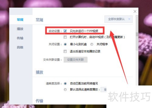 - 取消勾选仅允许运行一个PP视频选项。