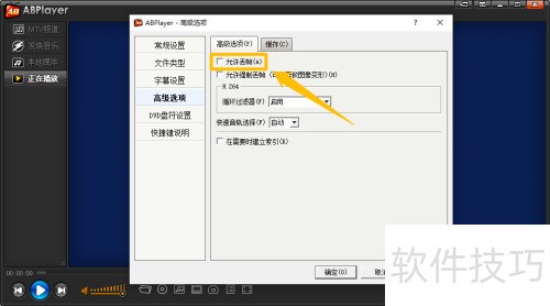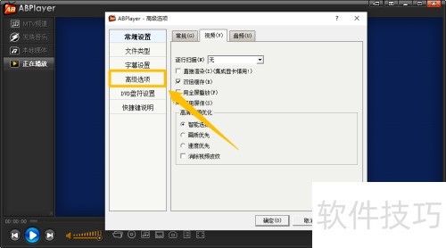 - 进入ABPlayer的高级选项界面,点击左侧的相应设置项。