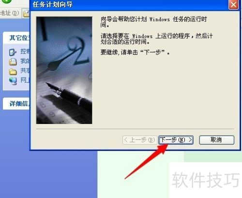 - 弹出任务计划向导后,点击下一步继续操作。