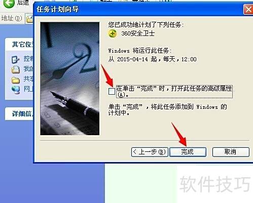 9、 设置成功后,勾选完成时打开此任务的高级属性前的复选框,随后点击完成按钮即可。