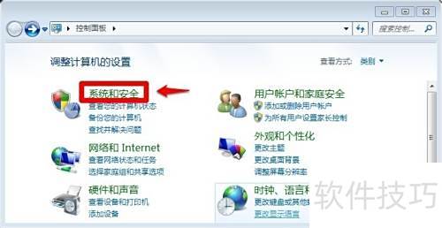 - 在控制面板中选择系统和安全选项。