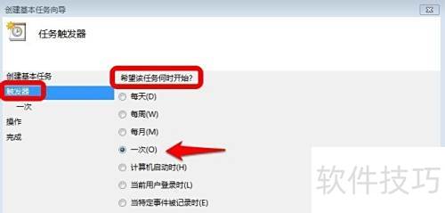 - 设定触发器启动任务的时间后继续。