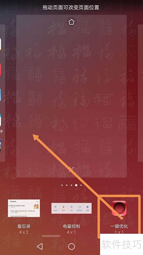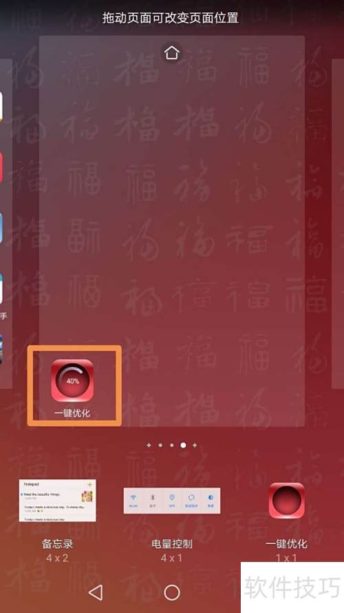 - 长按桌面空白区域,选择窗口小工具,添加一键优化,拖至桌面,随时点击使用。