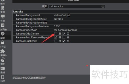 - 请勾选karaoke中的skipsilence选项以启用跳过静音功能。