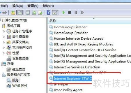 - 在服务列表中定位到Internet Explorer ETW收集服务,然后双击打开进行设置。
