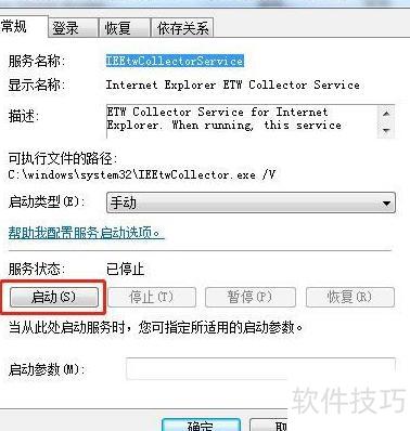 在Win7系统中,通过运行services.msc找到IEEtwCollectorService并启动即可。