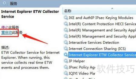 - 在服务列表中定位到Internet Explorer ETW Collector服务,然后将其选中。