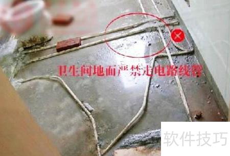 - 卫生间地面禁止铺设电路管线。