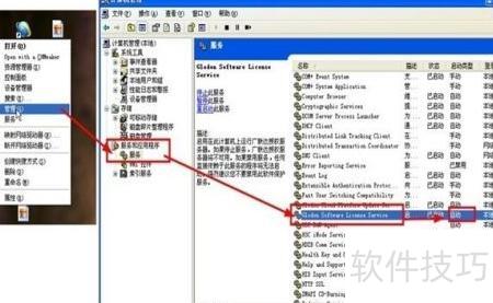 在电脑上右击此电脑,进入管理选项,接着选择服务和程序中的“服务”,寻找Glodon软件许可服务,并进行属性修改,使其启动时自动启动,确保其与系统同步运行。