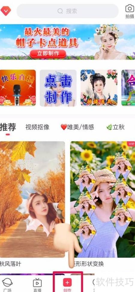 - 打开逗拍APP,进入创作页面,可选择多种视频模板进行制作。