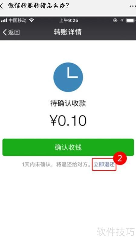 - 若对方未接收款项,可协商让其点击立即退还,对方拒收后资金将自动原路退回。