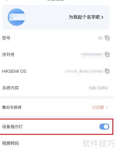 - 进入设备信息页面,开启指示灯开关即可操作。