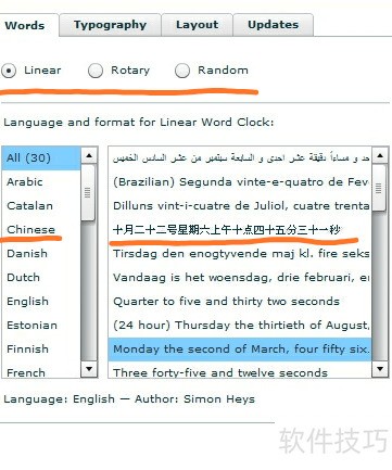 - 点击设置,选时钟样式为线性、旋转或随机,并将语言设为中文。