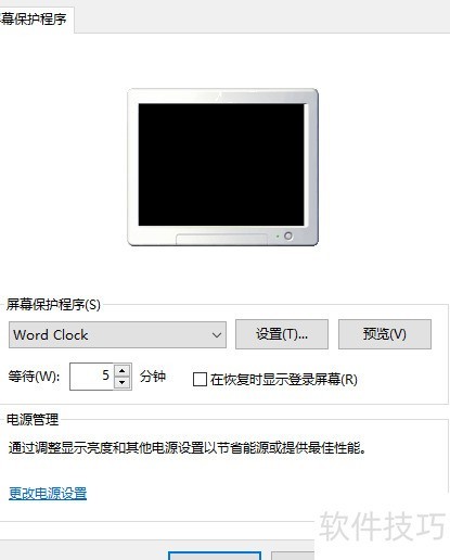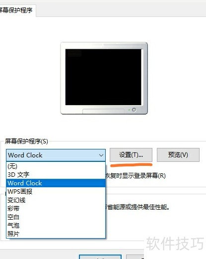 - 打开屏幕保护程序设置,选择word clock作为保护程序,操作所示。