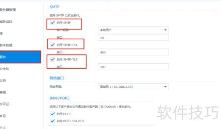 开启并激活你的电子邮件服务器(如:SMTP, SMTP-SSL 和 SMTP-TLS),接着在你的路由器上为这些服务设定相应的端口,比如:和 由于不同品牌的路由器配置方法各不相同,所以强烈建议你查阅相关的教程以完成设置,确保邮件服务可以顺畅运行。