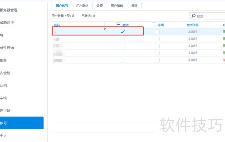 - 选择账户后,在对应激活项前勾选1完成操作。