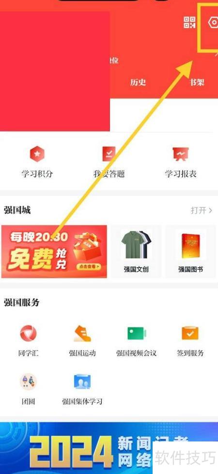 - 打开学习强国APP,进入后点击界面中的设置选项。