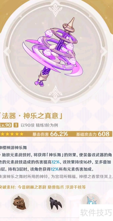 这是限量版五星神器,只需虔诚的祷告就能获得,不会出现在常规卡池中。突破所需的材料有今昔剧画之恶尉、隐兽指爪和浮游干核等。具体属性详细列在下方图中,唯一获取方式是参加限时活动的祈愿。---This is a limited edition, five-star artifact that can be obtained through sincere prayer. It will not appear in the regular draw pool. The breakthrough materials are today's plays' Evil尉, hidden beast claws, and floating core. See the table below for specific numerical attributes. There is only one way to obtain it: through the prayer during a special event.