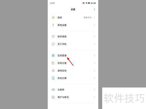 - 进入设置,选择应用管理选项。