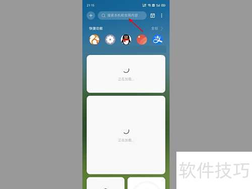 - 进入负一屏,点击搜索框。
