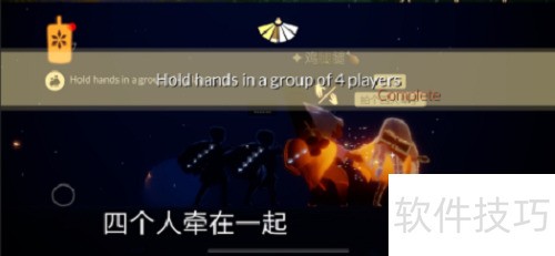 - 邀请三位好友共同牵手,四人手拉手组成团队完成任务。