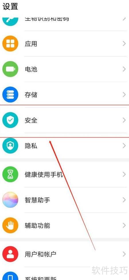 - 进入设置,上滑查找手机中的安全选项。