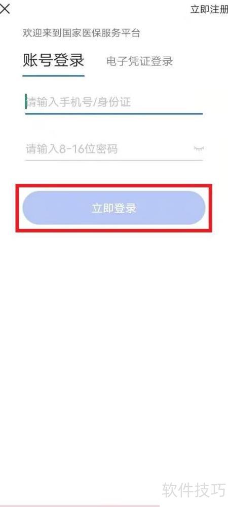 - 打开手机中的国家医保服务平台应用,点击红色框内所示区域。