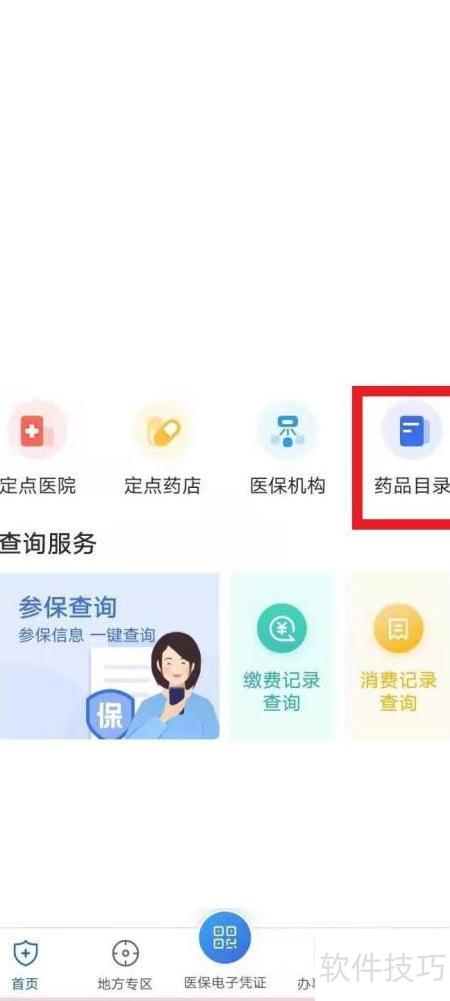 - 点击药品目录,见红色框选区域。