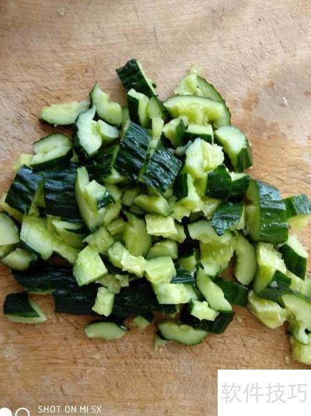 - 将黄瓜洗净后拍裂切块,不可直接切;干面皮泡软,蒜捣成泥备用。