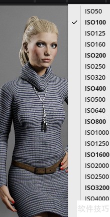 - 点击ISO按钮,弹出列表中会显示常用ISO数值,具体所示。
