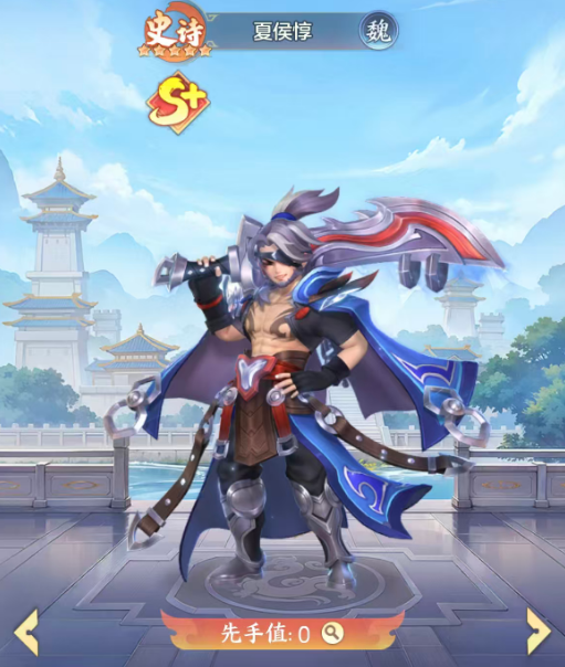 夏侯:“刚烈”技能可以对单一敌人造成等同于自身攻击力的伤害;“拔矢啖睛”则打击敌方前排所有单位,造成攻击力的群体伤害,目标处于控制状态时额外获得伤害加成。达到传说后,解锁了“虎魂”特性:每次有武将阵亡,夏侯回复怒气;敌方单位死亡时同样触发此效果。随着星级提升,生命值+和防御力+的增益属性生效,增强了其在持久战中的韧性。