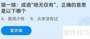 蚂蚁庄园8.16答案解析 蚂蚁庄园8月16日题目:绝无仅有的正确含义是什么?答案揭晓,快来了解。 1、 打开支付宝,进入蚂蚁庄园,点击庄园小课堂即可参与。 2、 进入后,看到题目为绝无仅有正确的意思是。 3、 选择作为正确答案即可。