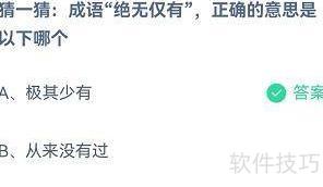 蚂蚁庄园8.16答案解析 更新时间:2026-02-16 09:02:23 蚂蚁庄园8.16答案解析 蚂蚁庄园8月16日题目:绝无仅有的正确含义是什么?答案揭晓,快来了解。 1、 打开支付宝,进入蚂蚁庄园,点击庄园小课堂即可参与。 2、 进入后,看到题目为绝无仅有正确的意思是。 3、 选择作为正确答案即可。