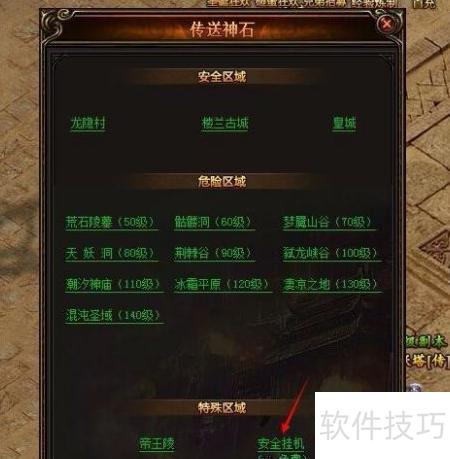 - 点击神石后选择下方安全挂机,即可进入挂机地图。