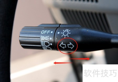 - 灯光杆上拨开启右转向灯,下拨开启左转向灯。