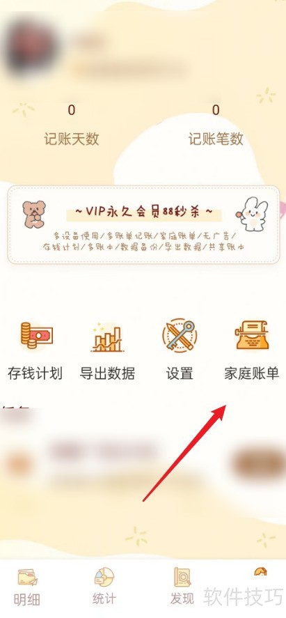- 进入我的页面,选择家庭账单。