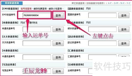 - 在快递查询页面输入运单号后,点击查询按钮即可。