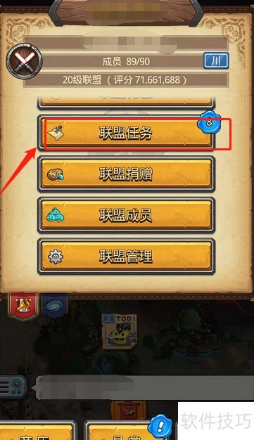 - 进入联盟后选择任务选项。
