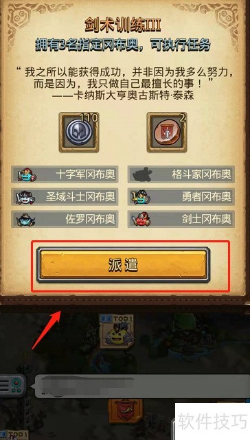 - 派遣相应冈布奥执行剑术训练III,五分钟后即可顺利完成任务。