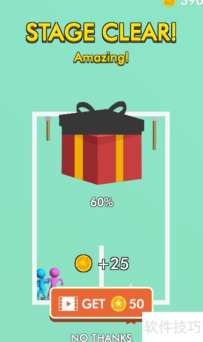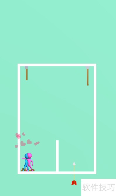 - 蓝色角色与粉色角色成功汇合,触发通关动画,所示,顺利通过关卡。